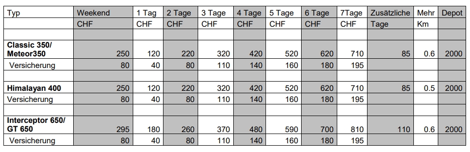 Motorrad gebraucht, pro Monat, inkl. 2'000km CHF 600.-, ab 4. Monat CHF 400.-